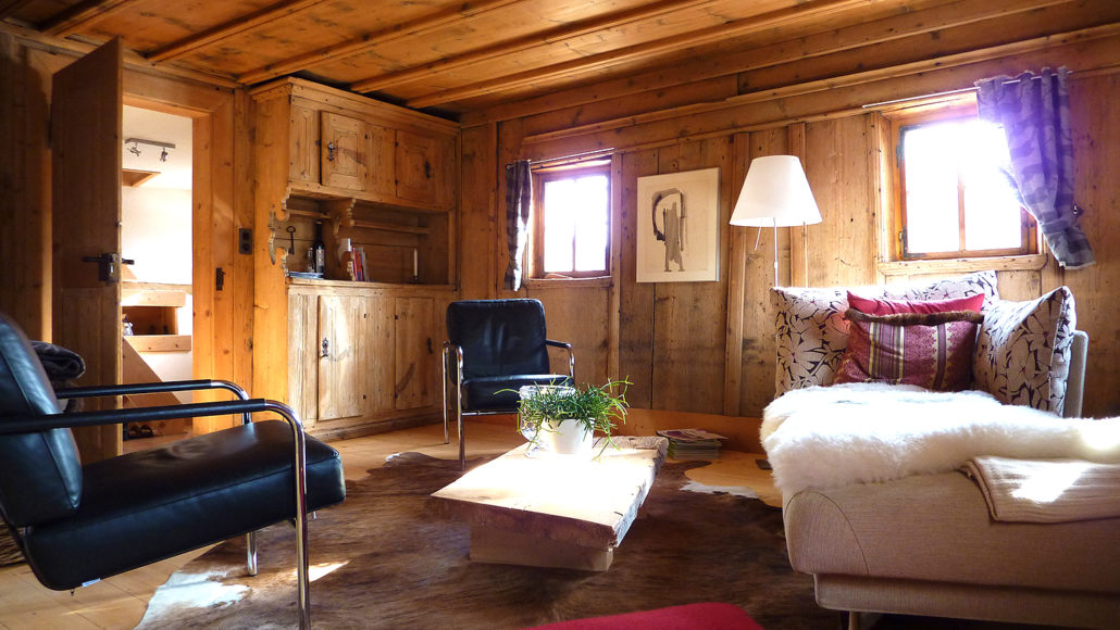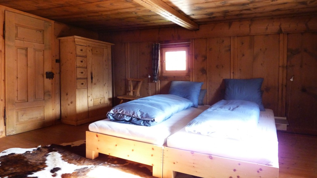 Schlafzimmer im 1. Stock – das Original, etwas schäps aber sehr heimelig, mit neuen Arvenbetten