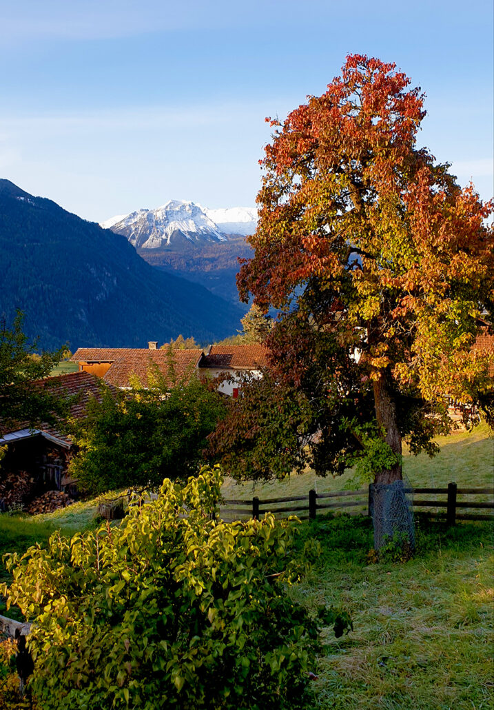 Herbststimmung – Ausblick von der Terrasse auf den Piz Toissa bei Savognin